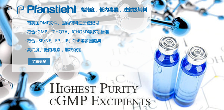 “熱烈祝賀Pfanstiehl的注射級甘氨酸Glycine(G-140)喜獲CDE登記號F20250000403, 這是Pfanstiehl產品獲得的第18個CDE登記號!”甘氨酸在醫藥輔料制劑中應用廣泛,, 可作為緩沖劑,增溶劑,穩定劑等,具有諸多優勢。Pfanstiehl秉承一貫高品質理念,為滿足全球生物制藥行業對于高品質甘氨酸的需求,隆重推出的注射級甘氨酸Glycine (G-140), 具有超高純度,超低內毒素,超低金屬殘留的特點,單獨檢測29種金屬離子,并且新增DNA,RNA,DNA酶,RNA酶和脂肪酶,亞硝酸鹽等多項質量指標的檢測,符合多國藥典規定(USP, EP, BP, JPE, ChP),可用于生物治療性藥物和疫苗的生產。產品信息:· 產品名稱:Glycine, High Purity, Low Endotoxin, Low Metals, USP, EP, BP, JPE, ChP (G-140)· 中文名稱:甘氨酸· 分子式:C2H5NO2· 分子量:75.07 g / mol· CAS號:56-40-6· 產品貨號:G-140產品特點: · 超高純度,超低內毒素,超低微生物含量,超低金屬雜質殘留· 質量指標新增DNA,RNA,DNA酶,RNA酶,脂肪酶和亞硝酸鹽檢測· 符合多國藥典:USP, EP, BP, JPE, ChP· 符合ICH Q3D標準· 符合GMP標準· 已獲DMF和CDE登記號 產品應用:· 緩沖劑· 穩定劑· 增溶劑如果您對Pfanstiehl注射級別Glycine G-140感興趣,歡迎聯系Pfanstiehl 中國區代理商北京西美杰科技有限公司獲得如下詳細的產品概況說明文件和測試樣品。Pfanstiehl Inc.最新產品系列如下,歡迎聯系北京西美杰科技有限公司獲取100g裝免費樣品。北京西美杰科技有限公司為Pfanstiehl中國代理,為客戶提供完善的技術支持與售后服務。歡迎撥打西美杰客服電話400-050-4006或者登陸網站www_xmjsci_com.gzqwwh.com了解更多信息。 更多>
